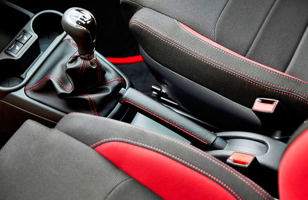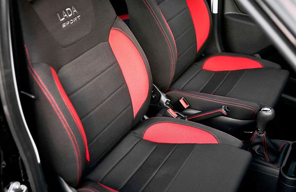 - Обивка сидений ткань. Цвет черный с красными элементами
